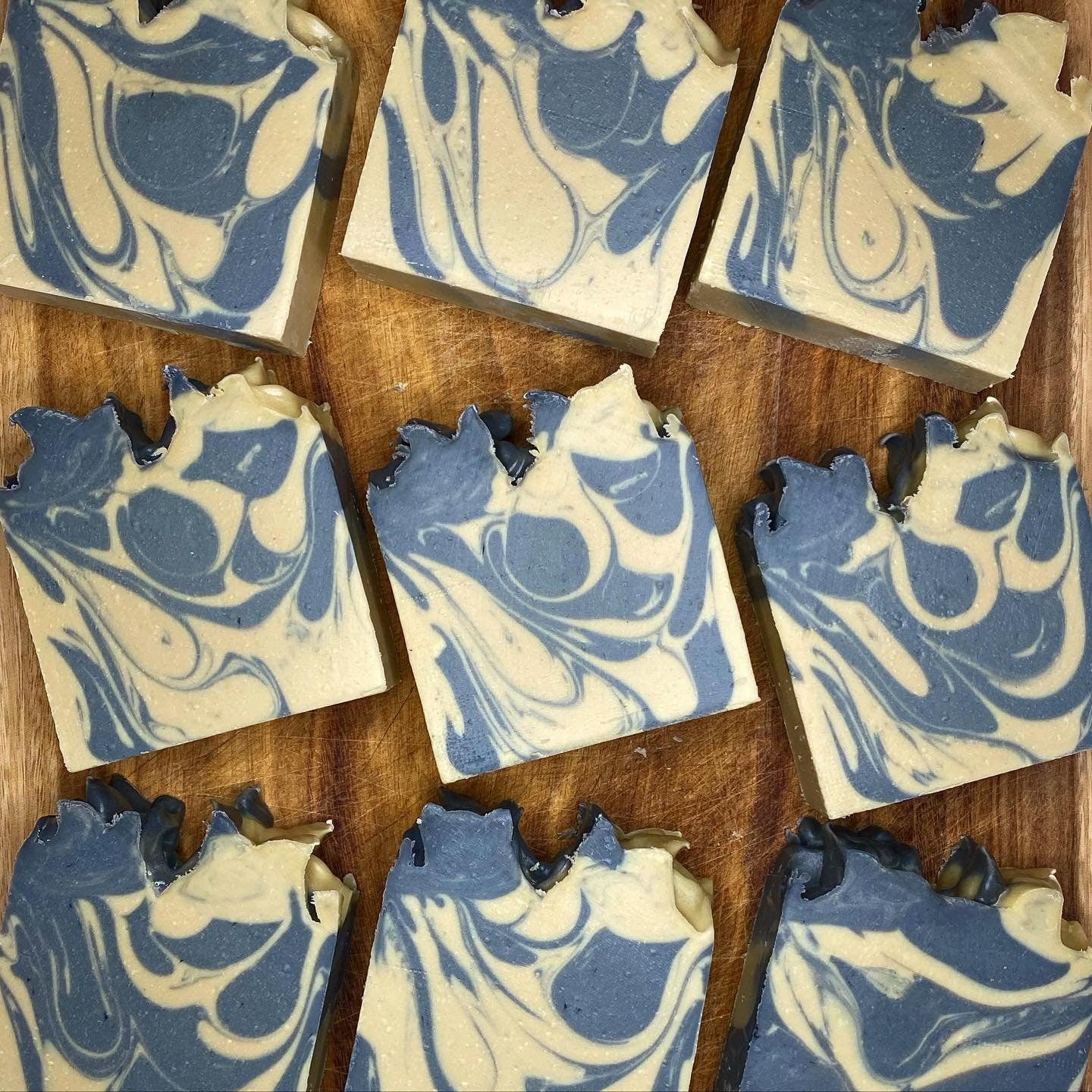 Ingredients: Raw goats milk (40%), caustic soda, coconut oil, olive oil, pork tallow, sunflower oil, Lemongrass essential oil, activated charcoal and yellow clay. Minimum 95g when packed.